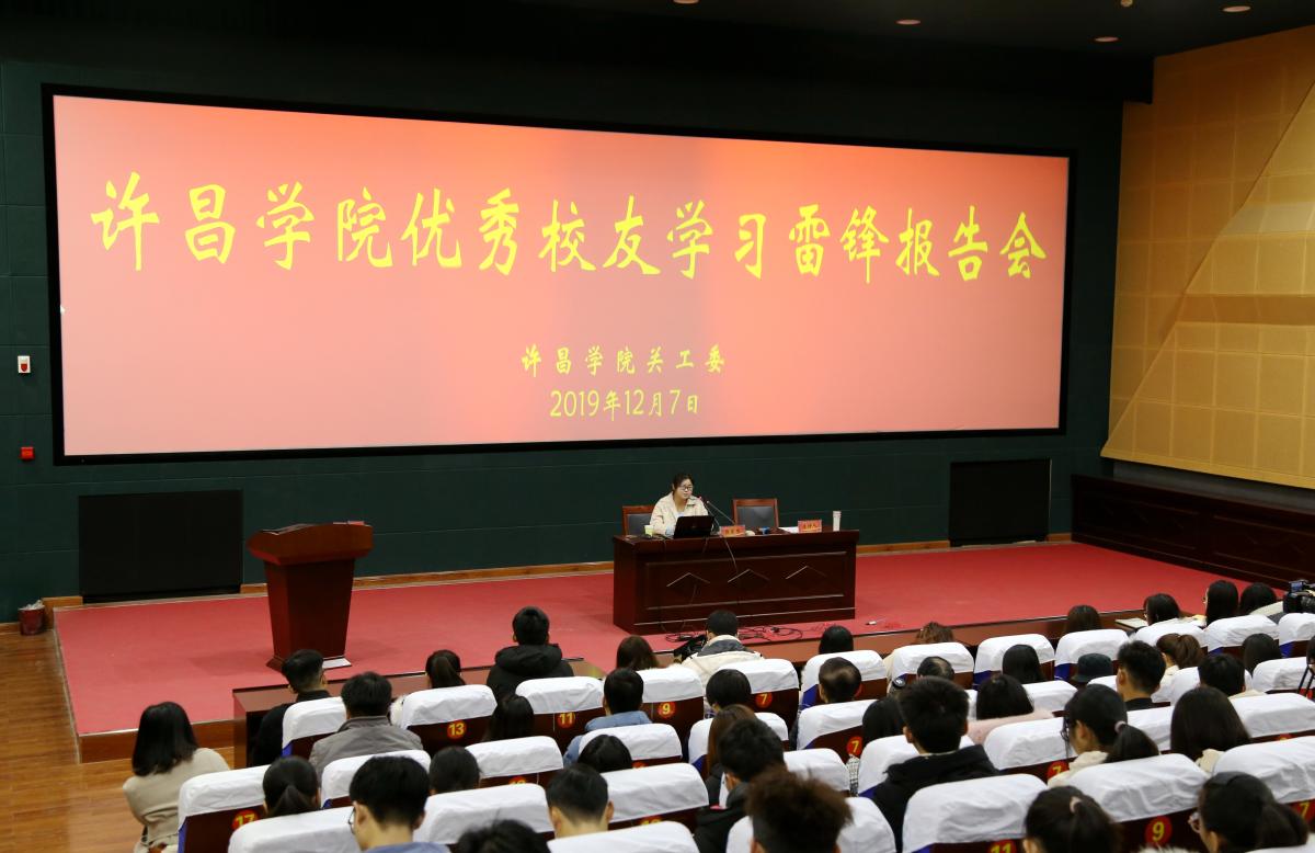 为深入学习贯彻党的十九届四中全会精神和《新时代公民道德实施纲要》,深入开展学雷锋活动,许昌学院关工委于2019年12月7日上午在创新创业学院会堂举办“许昌学院优秀校友学雷锋报告会”。校关工委副主任黄桂贞、王志远出席会议,校关工委委员、校学生党建特聘组织员、各学院关工委主任、辅导员和学生代表参加报告会。报告会由校关工委副主任黄桂贞同志主持。