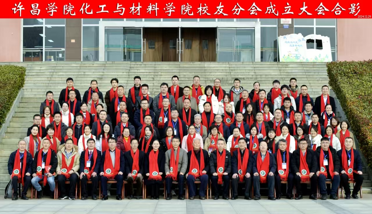 二、院校友分会概况:经学院校友会筹备组充分酝酿,化工与材料学院校友会组织架构成员共计82人,其中名誉会长1人,会长1人、副会长11人,顾问32人,秘书长1人,副秘书长3人,理事48人。2024年12月29日,许昌学院化工与材料学院校友分会成立大会,选举产生第一届校友会理事及负责人。其中杨风岭任名誉会长、许志红任会长、王焱 、刘少华、 李万仓、 李品将 、何伟伟、 张学燕 、法文君 、赵军锋、 温俊利、 蒲登攀、 路明任副会长、张学燕任秘书长,刘克克 、刘满营 、孟庆磊任副秘书长。学院校友会将通过多种渠道,广泛收集校友信息,策划学术交流研讨,合作项目洽谈、创新创业论坛、教育教学论坛、参观校园、公益志愿等活动,为广大校友搭建一个联络感情、交流合作、回馈母校、扩大学院社会影响力的优质平台。