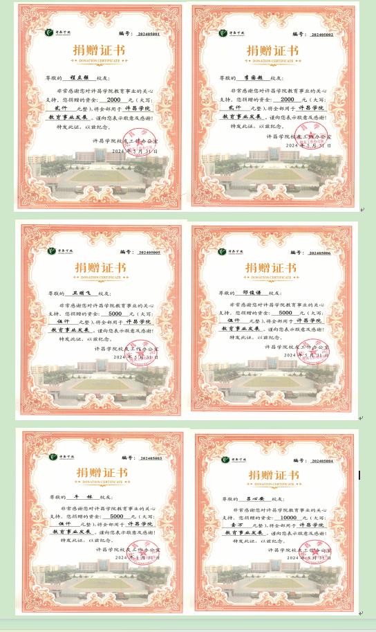 2024年5月23日,我校商学院2014届商学院市场营销专业毕业生,许昌索腾网络科技有限公司负责人吕心安校友向学校捐赠1万元人民币,用于学校校友会注册资金以及校友举办活动等经费。